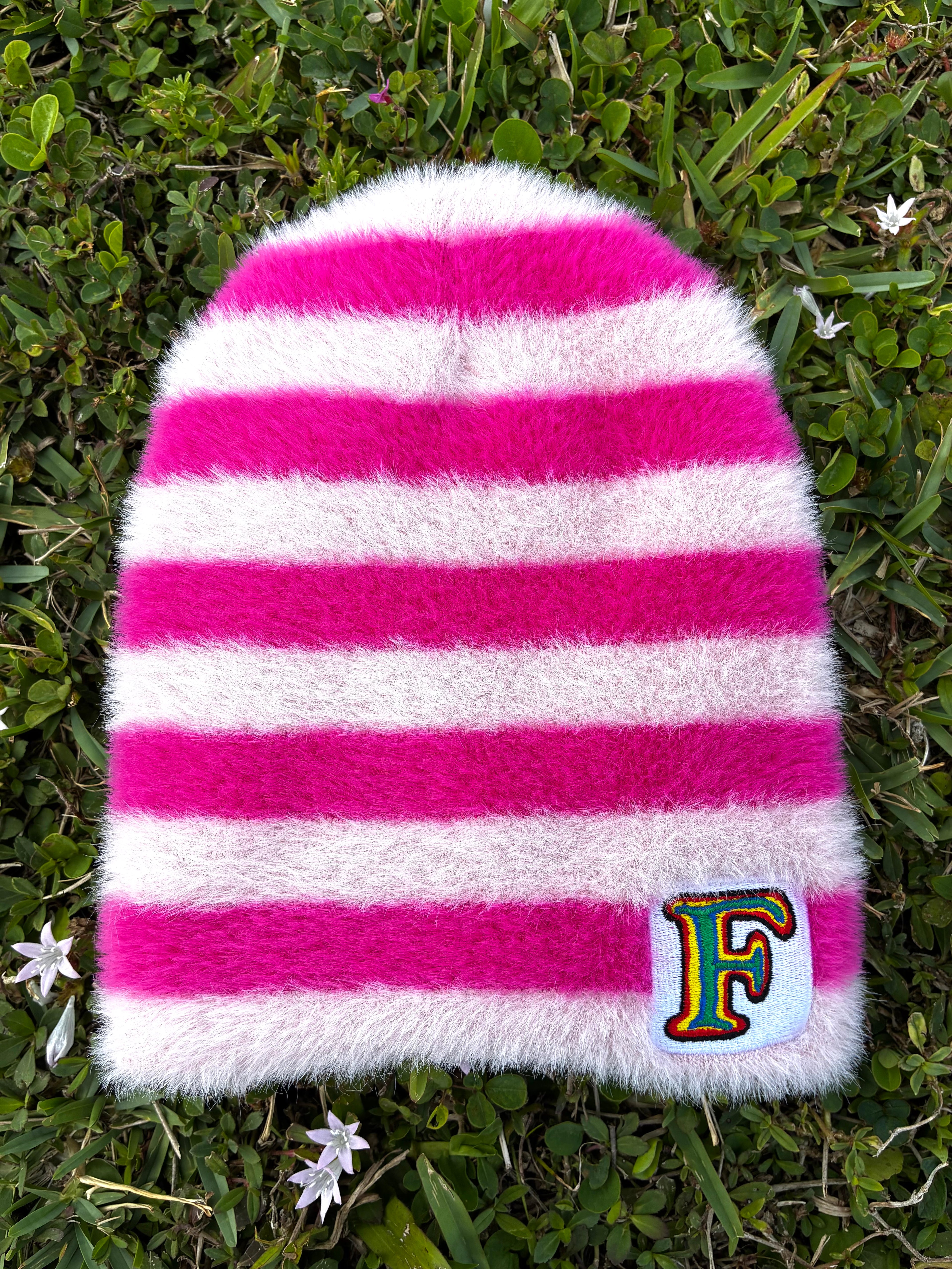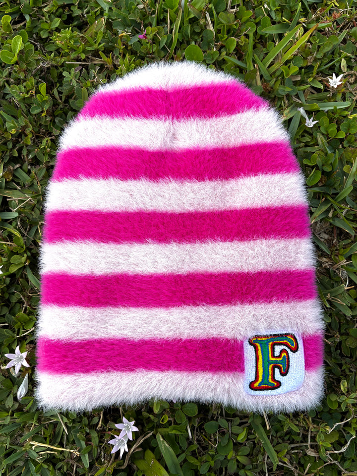 Pink contrast colored beanie (Satin lined)